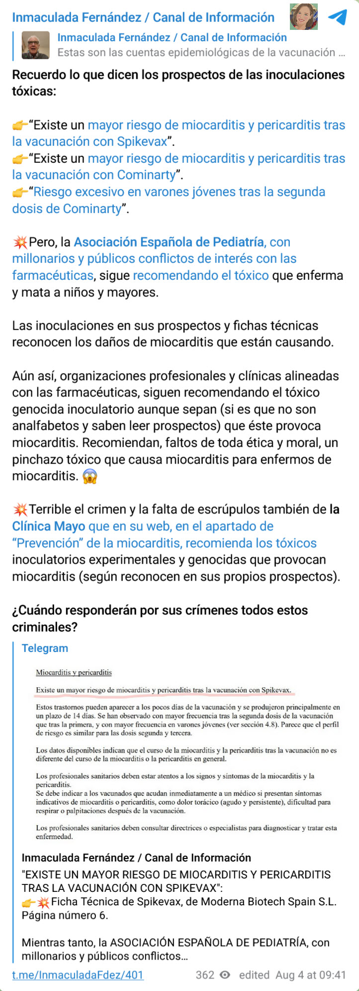 Y todo esto sin contar posibles modificaciones genéticas, esterilidad, cáncer, autismo miopericarditis, y un largo etc.