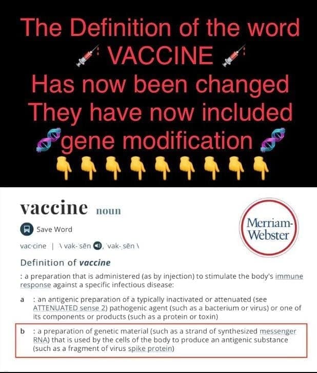 En el diccionario de Inglés equivalente a nuestro diccionario de la RAE, se ha modificado la definición de vacuna para incluir las inoculaciones con preparados genéticos de ADN o ARNm.