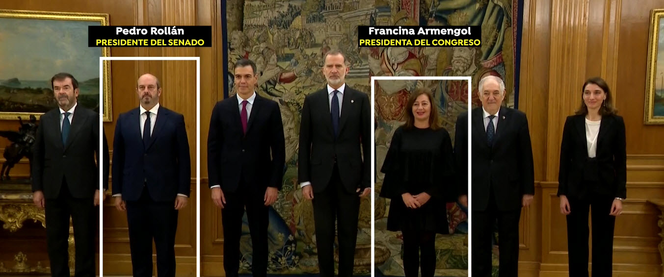 Hoy, ante Pedro Sánchez, la Casa Real ha buscado minuciosamente una perspectiva que no deja ver con qué cara saluda a Sánchez:
