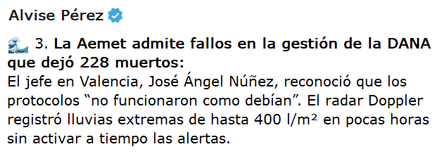 La primera vez en la historia de eso que llaman "la democracia" española, que acontecimientos como "la DANA" no tiene una lista oficial de víctimas, ni "el apagón" tiene un informe oficial del gobierno explicando las causas. Tampoco las causas judiciales de ambas cosas, sobre todo la del apagón, más sencilla, avanzan suficientemente.