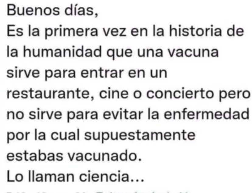 Y en lugar de orientar sus sobre-esfuerzos a solucionar el origen de sus males, se dirigen con contundencia a los "negacionistas", como el problema, y pidiendo la obligatoriedad de la ponzoña esa, rompiendo todas los derechos y libertades individuales ganadas y establecidas después de episodios de la historia como el nazi.