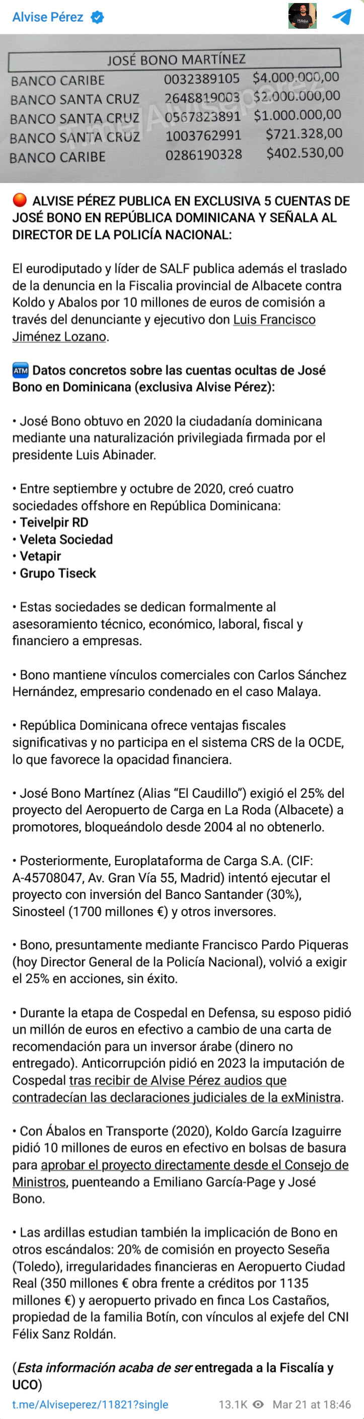 Meta-EtiquetasAlvise, Koldo García Izaguirre, Ábalos, Luis Francisco Jiménez Lozano, José Bono Martínez El Caudillo, Carlos Sánchez Hernández, Aeropuerto de Carga en La Roda, Francisco Pardo Piqueras Director General de la Policía Nacional, Cospedal, aeropuerto privado finca Los Castaños propiedad de la familia Botín, Félix Sanz Roldán