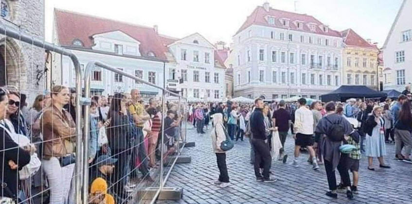 Plaza en Estonia, donde "los no vacunados" están siendo segregados de la sociedad detrás de vallas metálicas, porque se niegan a convertirse a la nueva ideología oficial: